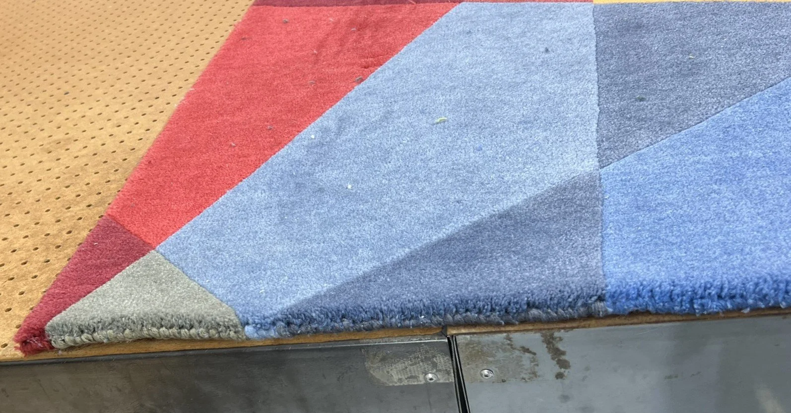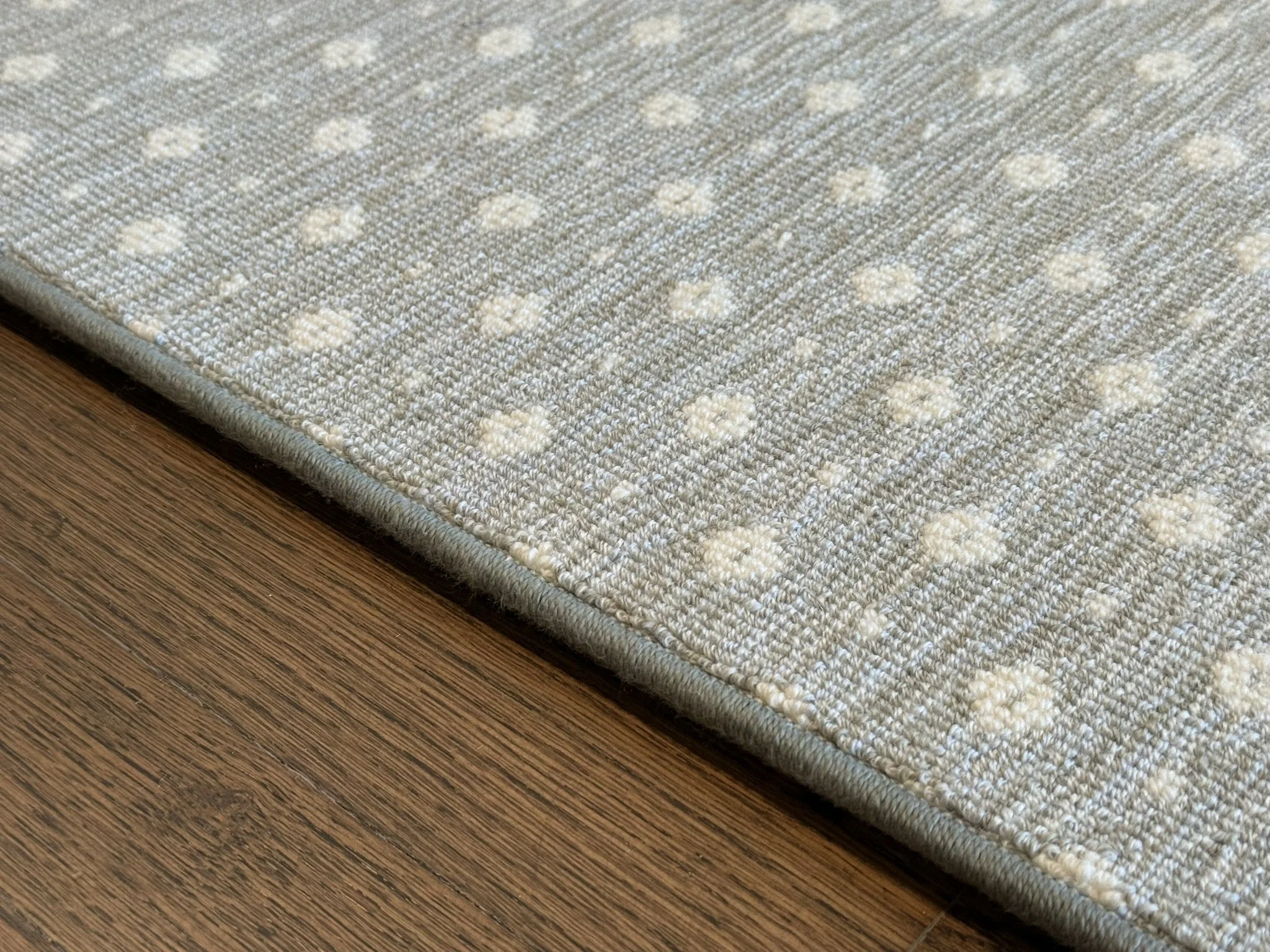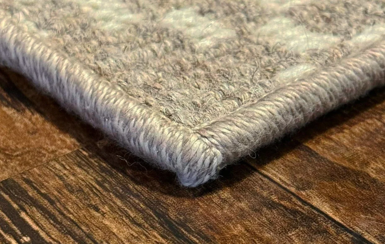 An elegant, finished edge on a rug can be achieved through serging, a sewing method where yarn is continuously wrapped around the border to prevent fraying. You have the option of using yarn that matches the rug's colors or selecting a complementary shade.