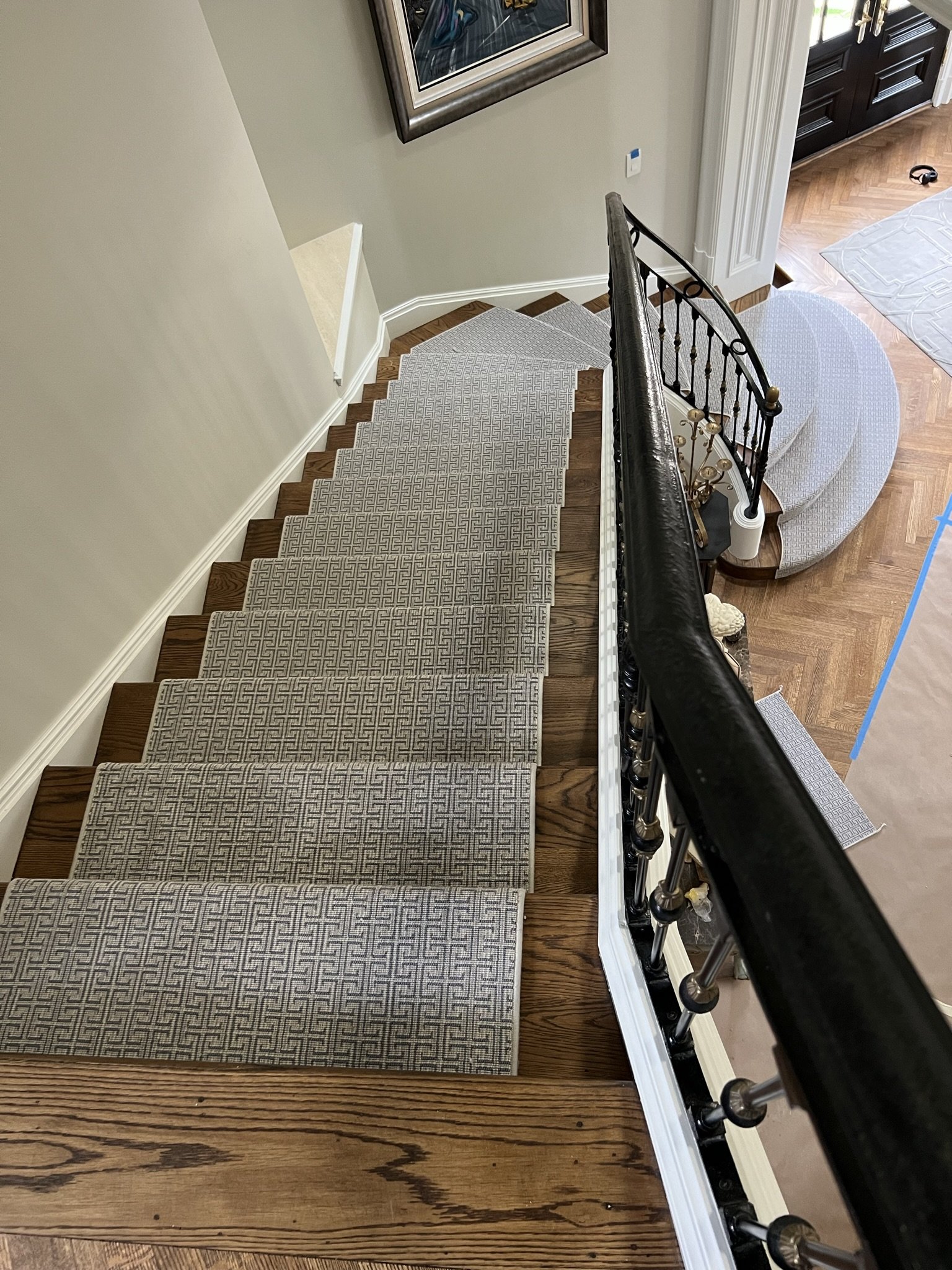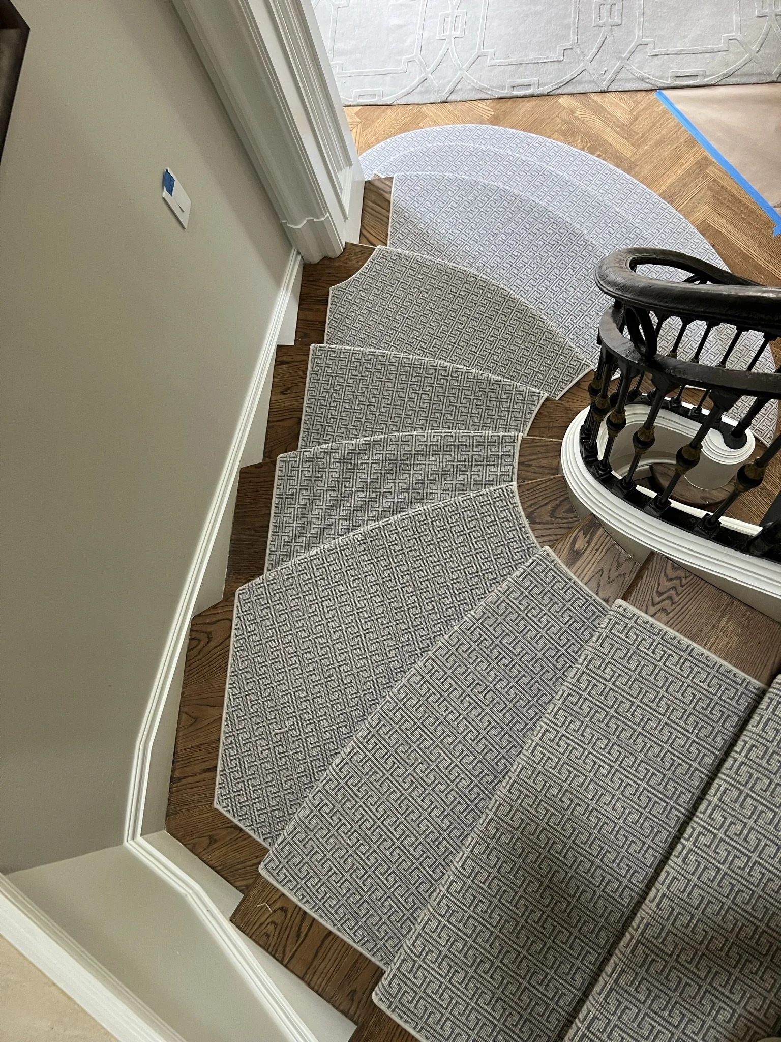 Bringing your vision for the perfect staircase runner to life is a process of precision and artistry at our studio. It all starts when our specialists create a custom template, perfectly tailored to your staircase and incorporating your chosen design ideas. Back in our dedicated in-house workshop, this detailed template guides the transformation of your selected broadloom carpet, as we meticulously shape it to match every curve and dimension of your stairs and home décor. Once your personalized masterpiece is complete, we’ll schedule a convenient time for our professional team to install it, ensuring a seamless and beautiful addition to your home.
